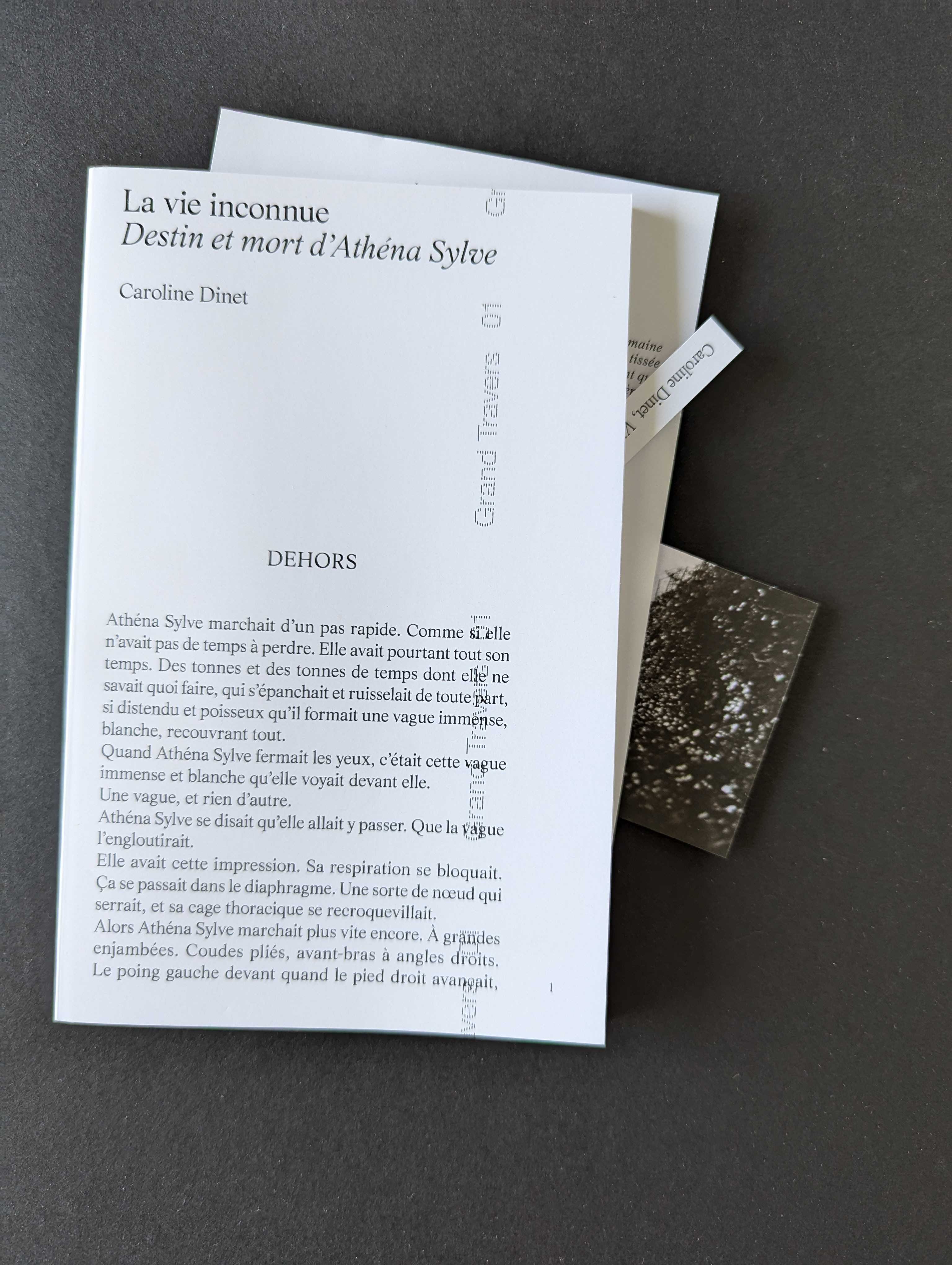 La vie inconnue. Destin et mort d'Athéna Sylve est le premier texte publié de Caroline Dinet. Anthropologue de formation, elle interroge la façon humaine (et urbaine) d’exister au regard de la diversité des mondes possibles. Elle s’intéresse à la porosité entre nature et culture, quand les lignes de partage se dissolvent, révélant les points aveugles et les fantômes du (et des) sens, leurs dévoilements et vacillements. Par cette attention portée aux humains et non-humains, aux vivants et aux défunts, son regard poète/politique fait place aux territoires multipliés du devenir.